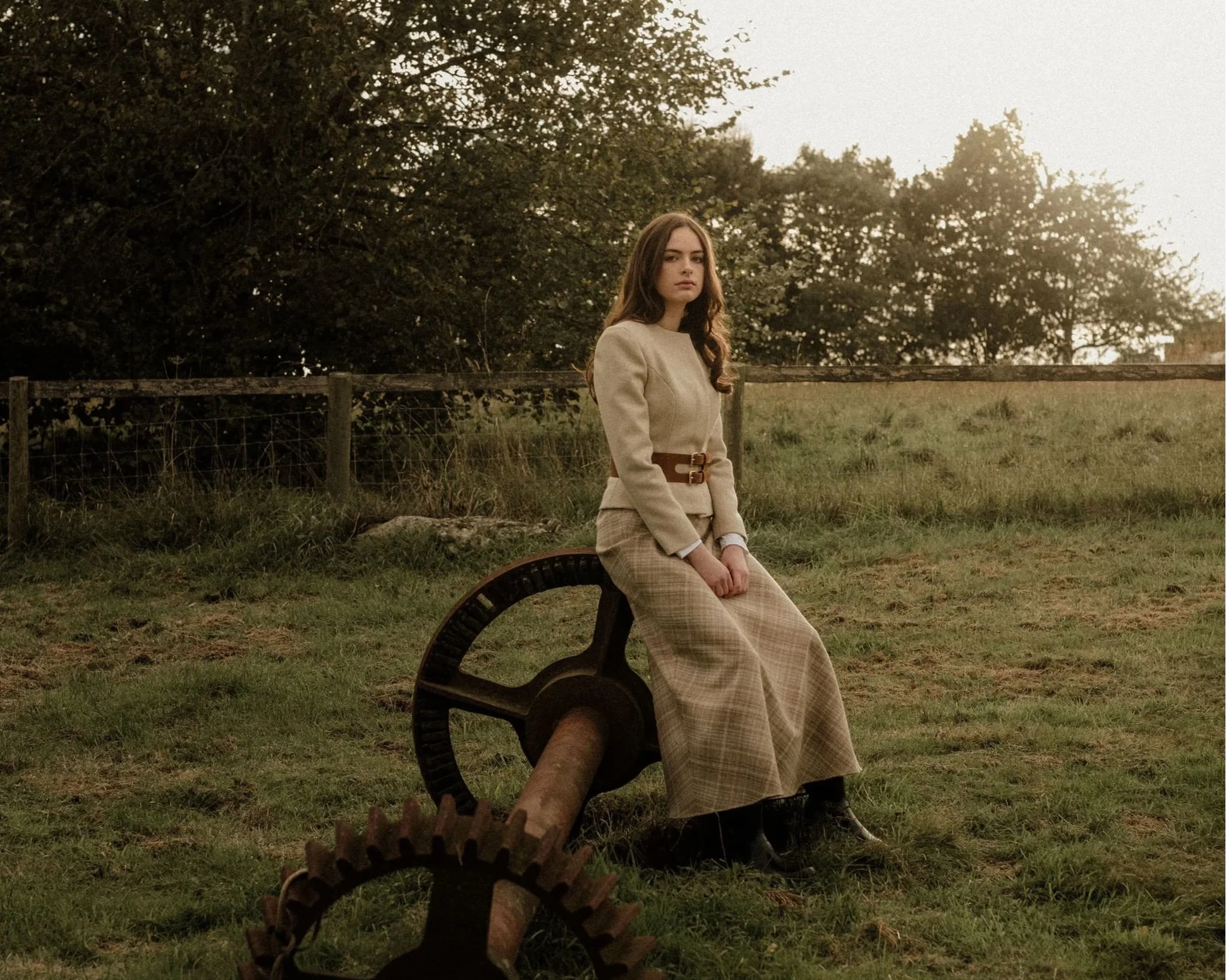 From the warmth of the parlour — tailored silhouettes, soft textures, refined lines — to the freedom of the glen — rugged tweeds, flowing movement, weather-ready wool, and garments shaped by land rather than trend.